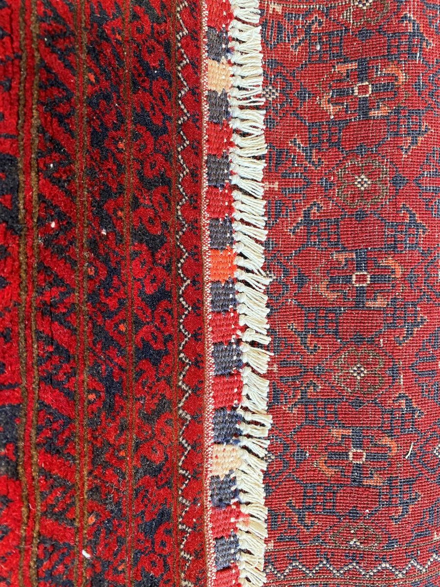Afghan Kunduz rugs are traditional, handmade rugs from the Kunduz region of northern Afghanistan, typically made of a wool pile on a cotton or wool foundation. They are known for their rich, deep red and burgundy colours, classic geometric and semi-floral designs, and high quality with a durable, long-lasting pile.